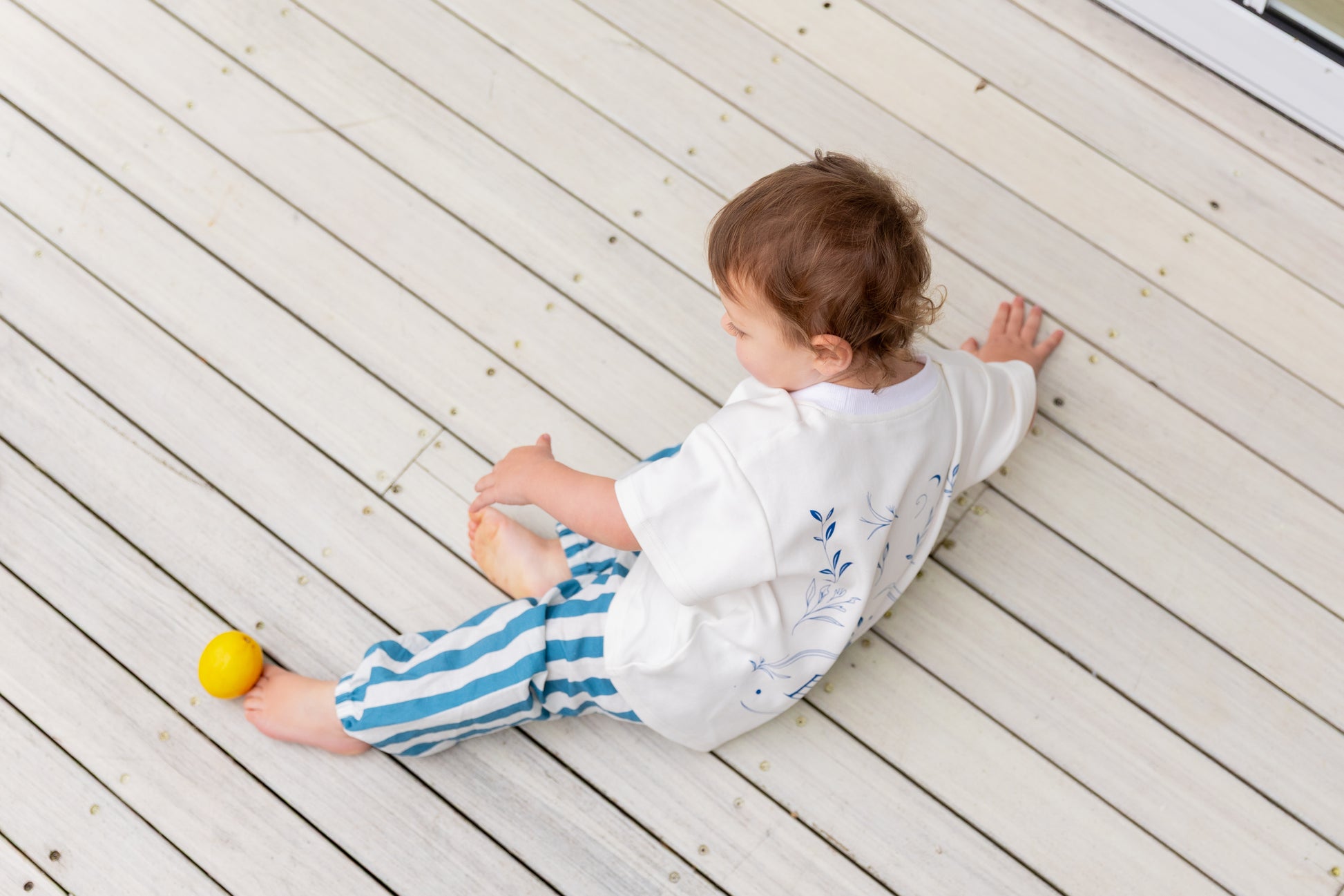 Featuring classic blue and white stripes and crafted from an organic cotton and linen blend, they’re lightweight, breathable and made for little legs on the move. Easy, comfortable and effortlessly timeless.